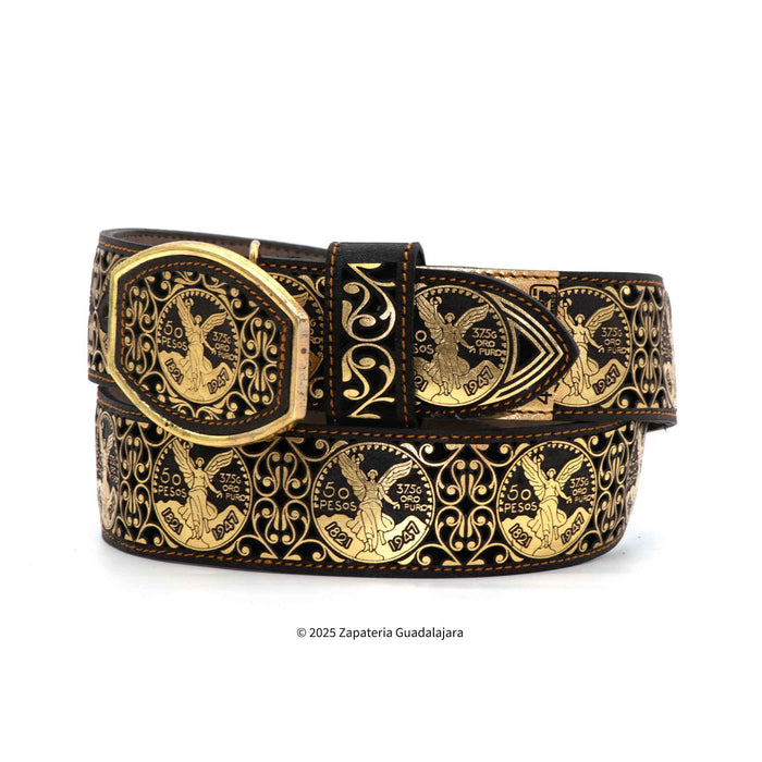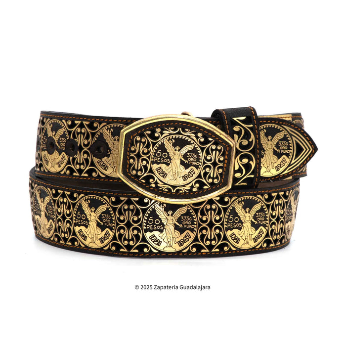 CINTO VAQUERO DE PIEL EL CENTENARIO DORADO.