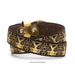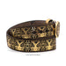This men's western leather belt is expertly crafted in Mexico, with a 2" width for a comfortable fit. The vibrant gold and black combination is achieved through laser cutting, adding a modern touch to a classic accessory. Complete your outfit with this stylish and high-quality belt.