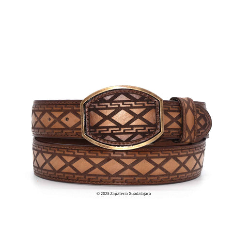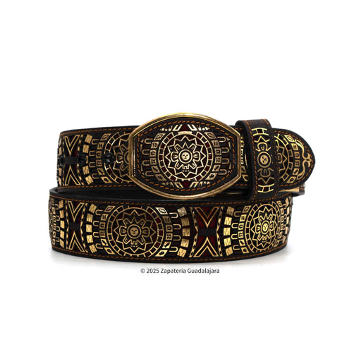 Zapateria GuadalajaraCINTO VAQUERO DE PIEL AZTECA DORADO. Con el fondo en color rojo. This men's western leather belt is expertly crafted in Mexico, with a 2" width f...