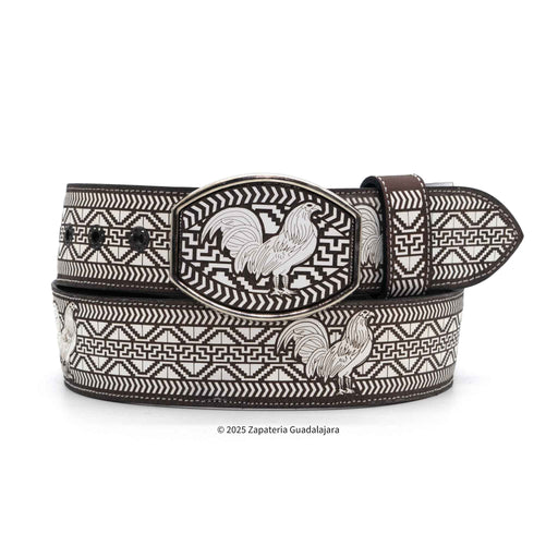 Zapateria GuadalajaraCINTO VAQUERO DE PIEL EL GALLO BLANCO. Con el fondo en color cafe. This men's western leather belt is expertly crafted in Mexico, with a 2" width...