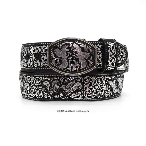 Zapateria GuadalajaraCINTO VAQUERO DE PIEL PELEA DE GALLOS PLATEADO. Con el fondo en color negro. This men's western leather belt is expertly crafted in Mexico, with ...