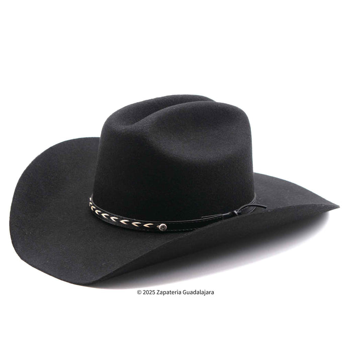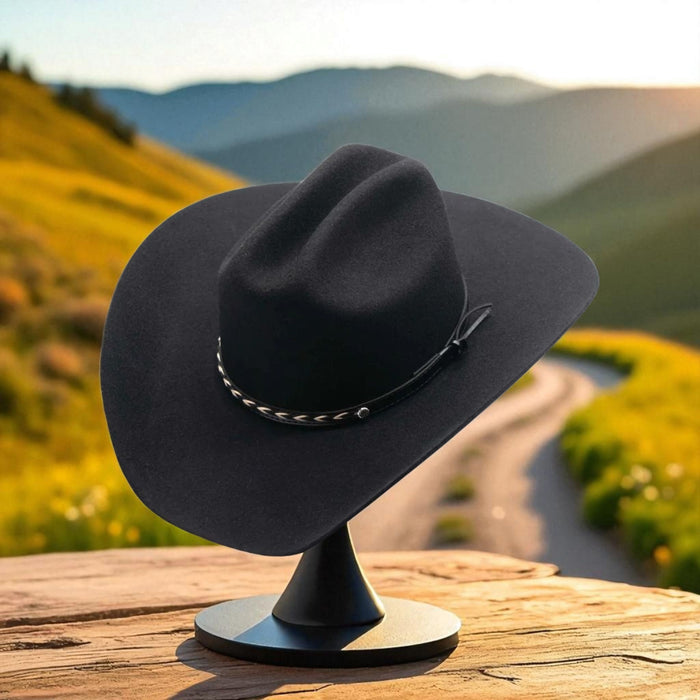 Crafted from 100% sheep wool, the Texas Black offers a refined blend of durability and style. Featuring a 4.5-inch crown and a 4-inch brim, this hat provides a balanced silhouette ideal for both protection and elegance. Its high-quality felt construction ensures comfort and long-lasting wear, making it a sophisticated choice for those seeking expert craftsmanship in headwear.