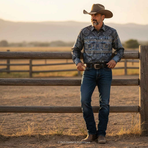 LamasiniExpertly crafted from a blend of 97% cotton and 3% spandex, this Grey Western Fashion Shirt boasts a comfortable and durable material for all-day w...
