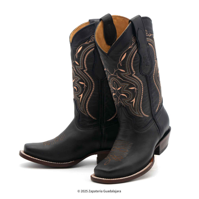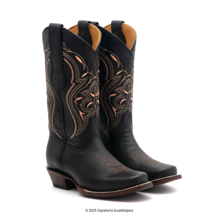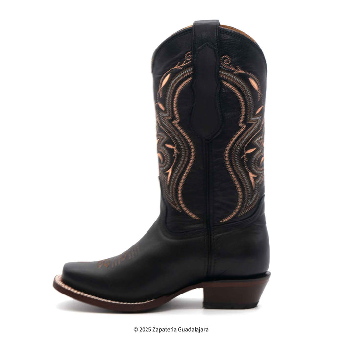 WOMEN'S NATALY SQUARE TOE BLACK LEATHER BOOT