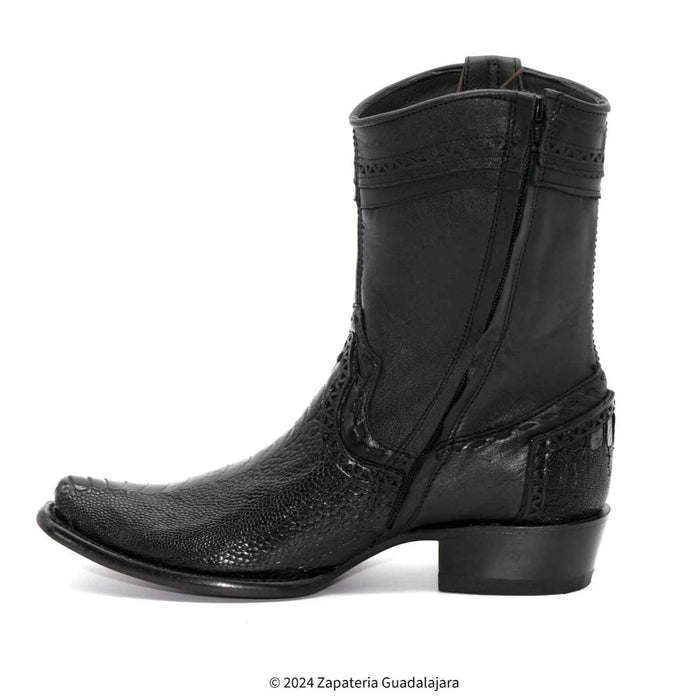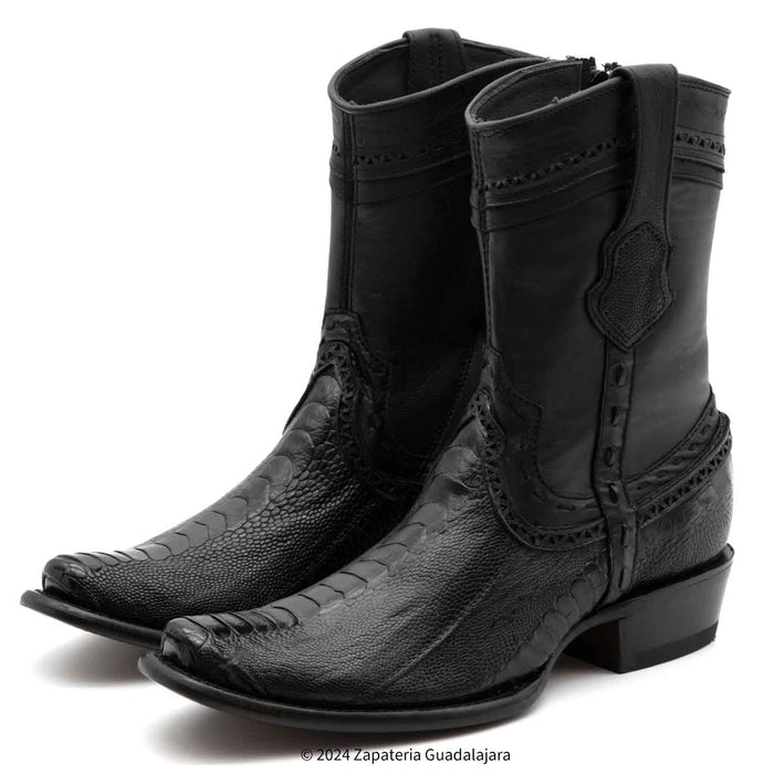 - Genuine ostrich leg leather zipper boot, showcasing a Dubai style. Shaft measures 9.5", with a 1.5" heel. Perfect for those who appreciate unique footwear. Belt available for an additional price.