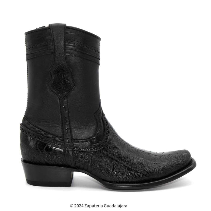 - Shaft height: 9.5". Heel height: 1.5". Material: Genuine ostrich leg leather. Sole: Leather with non-slip rubber.
