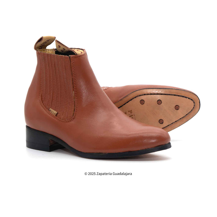 Botines en piel de res y suela de vaqueta con incrustacion de hule antideslizante.