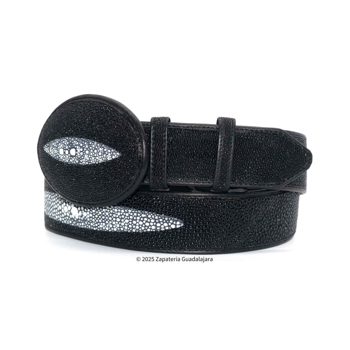 CINTO VAQUERO DE PIEL DE MANTARRAYA PERLA SENCILLA.