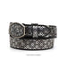 This men's western leather belt is expertly crafted in Mexico, with a 2" width for a comfortable fit. The vibrant silver and black combination is achieved through laser cutting, adding a modern touch to a classic accessory. Complete your outfit with this stylish and high-quality belt.