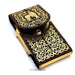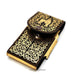 This men's western leather smartphone case is expertly crafted in Mexico, with a 7" high and a 3.5" width for a comfortable fit. The vibrant gold and black combination is achieved through laser cutting, adding a modern touch to a classic accessory. Complete your outfit with this stylish and high-quality belt.