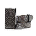 This men's western leather smartphone case is expertly crafted in Mexico, with a 7" high and a 3.5" width for a comfortable fit. The vibrant silver and black combination is achieved through laser cutting, adding a modern touch to a classic accessory. Complete your outfit with this stylish and high-quality belt.