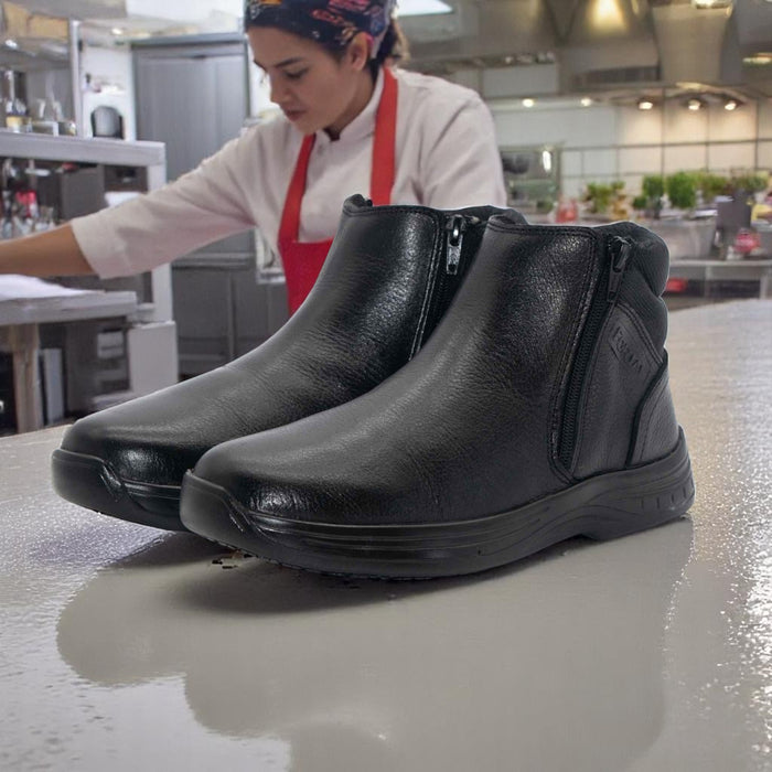 Estos zapatos de piel están diseñados pensando en las mujeres que se esfuerzan día a día en cocinas, restaurantes, hoteles, hospitales y espacios donde el confort y la seguridad son prioridad.